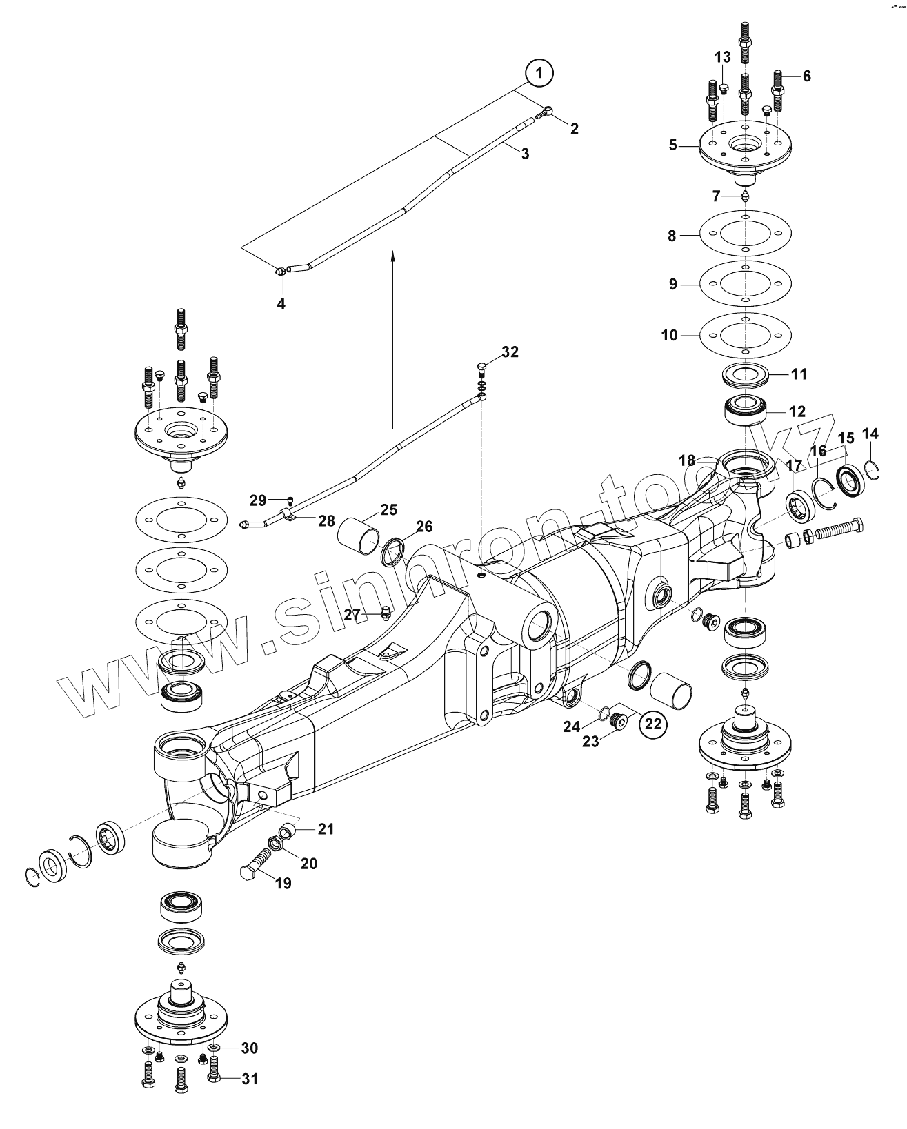 Каталог запасных частей к технике: Hidromek HMK 102B ALPHA. FRONT AXLE, AXLE CASING PARTS- HMK