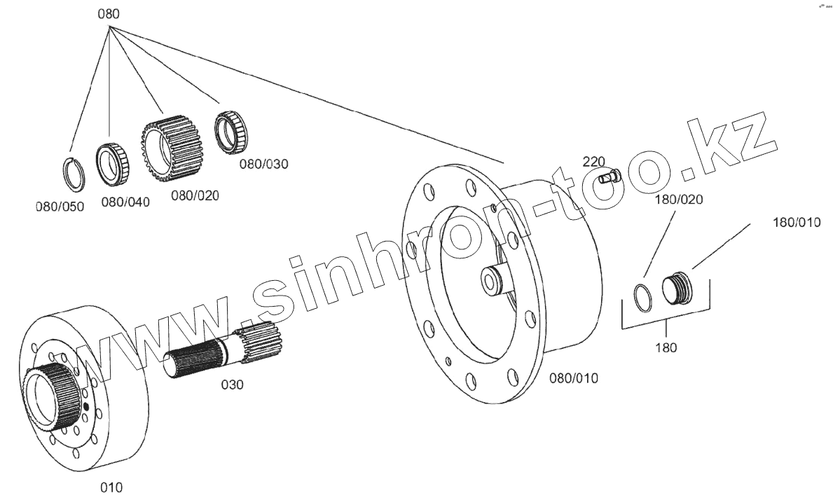 Каталог запасных частей к технике: Hidromek HMK 102B ALPHA. FRONT AXLE, PLANETARY DRIVE B060250 -