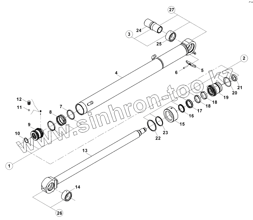 Каталог запасных частей к технике: Hidromek HMK 102B ALPHA. STABILIZER CYLINDER, LH B060001 -