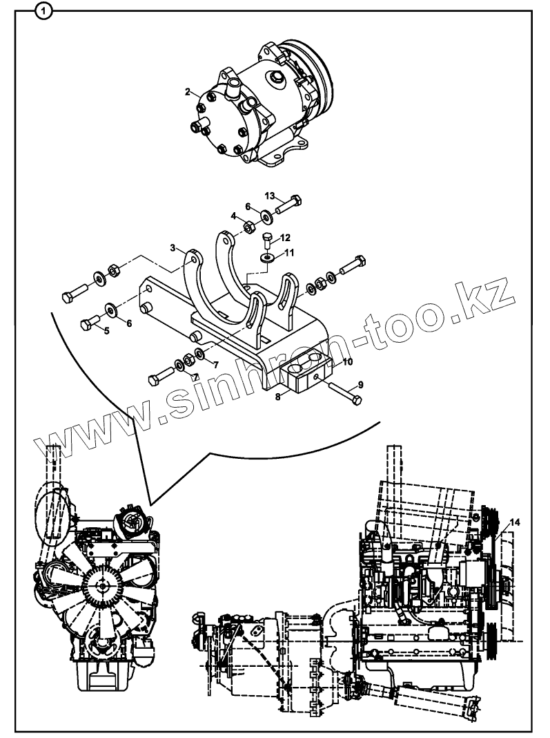 Каталог запасных частей к технике: Hidromek HMK 102S. COMPRESSOR ASSEMBLY, WITH AIR CONDITIONER, GREEN ENGINE