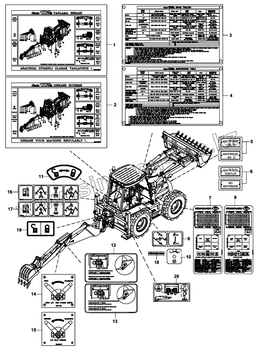 Каталог запасных частей к технике: Hidromek HMK 102S. DECAL AND PLATES, OPERATING AND MAINTENANCE