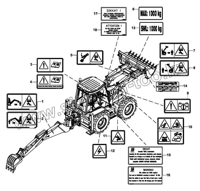 Каталог запасных частей к технике: Hidromek HMK 102S. DECALS, WARNING