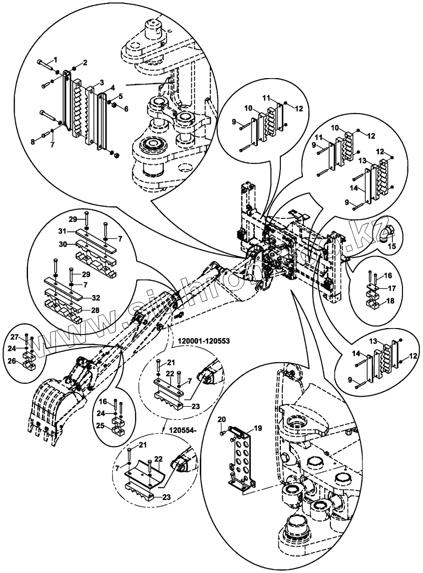 Каталог запасных частей к технике: Hidromek HMK 102S. HOSE HOLDER SET, HYDRAULIC, NB+KT, BACKHOE