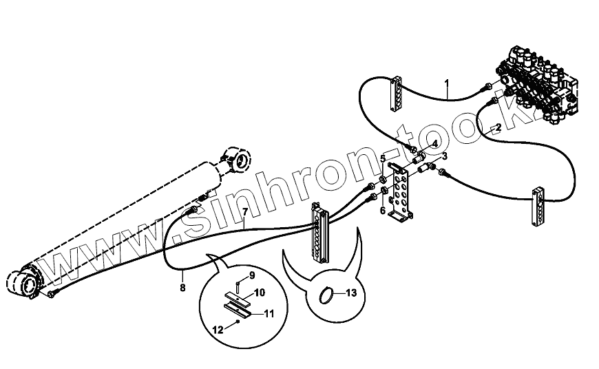 Каталог запасных частей к технике: Hidromek HMK 102S. HYDRAULIC, RAM, MAIN BOOM, (DIS10968), BACKHOE