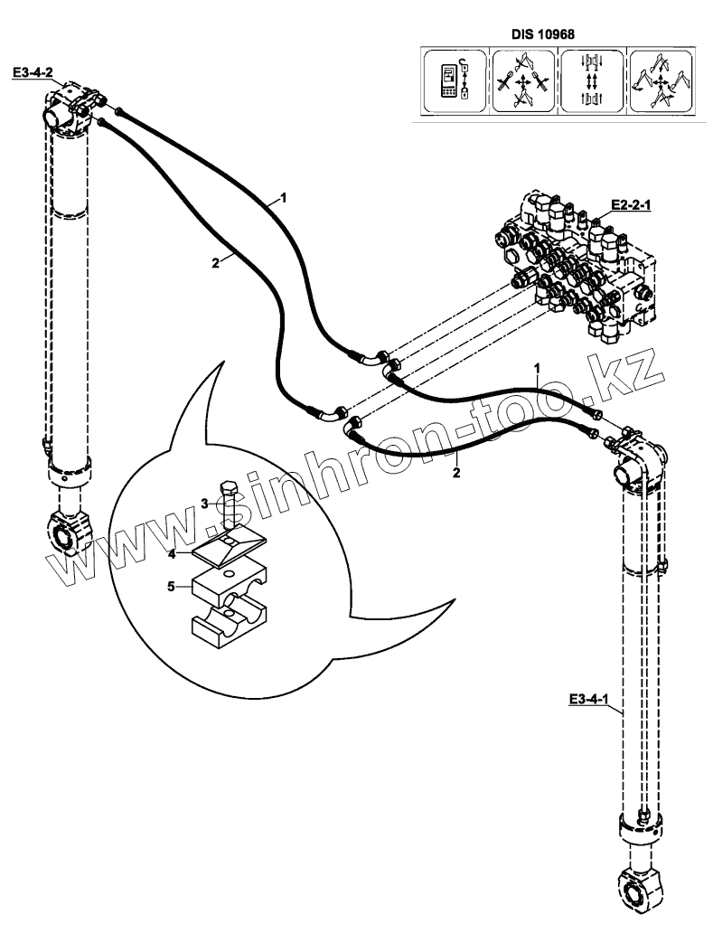 Каталог запасных частей к технике: Hidromek HMK 102S. HYDRAULIC, RAM, STABILISER (DIS10968, FWD STABILISER F.,)