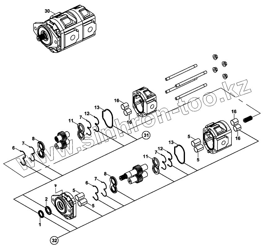 Каталог запасных частей к технике: Hidromek HMK 102S. PUMP, HYDRAULIC, HEMA, ( 46/23 cc/rev )