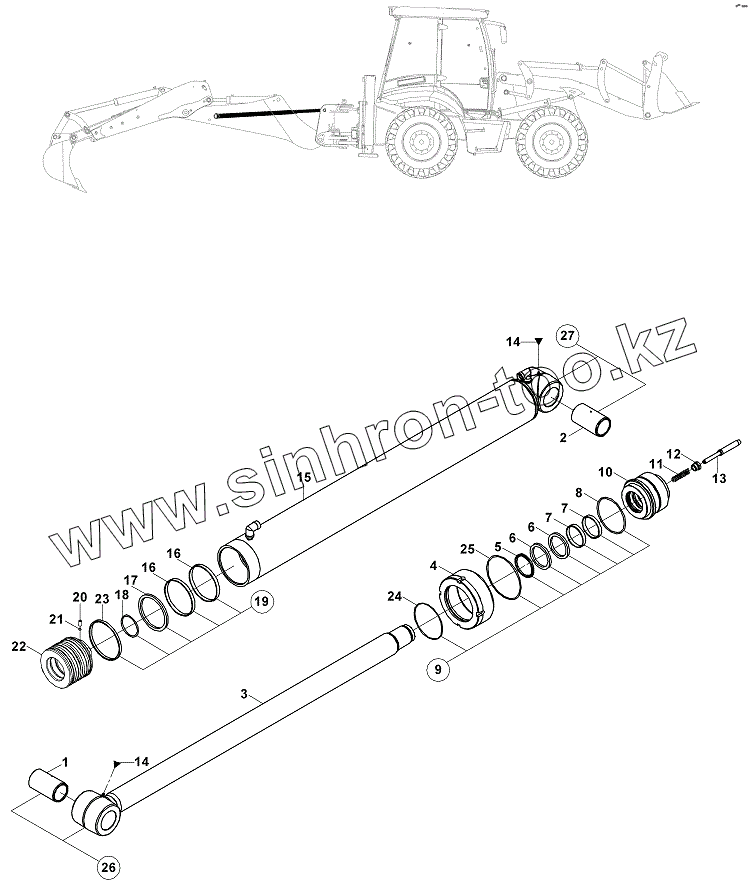 Каталог запасных частей к технике: Hidromek HMK 102S ALPHA. BOOM CYLINDER, BACKHOE
