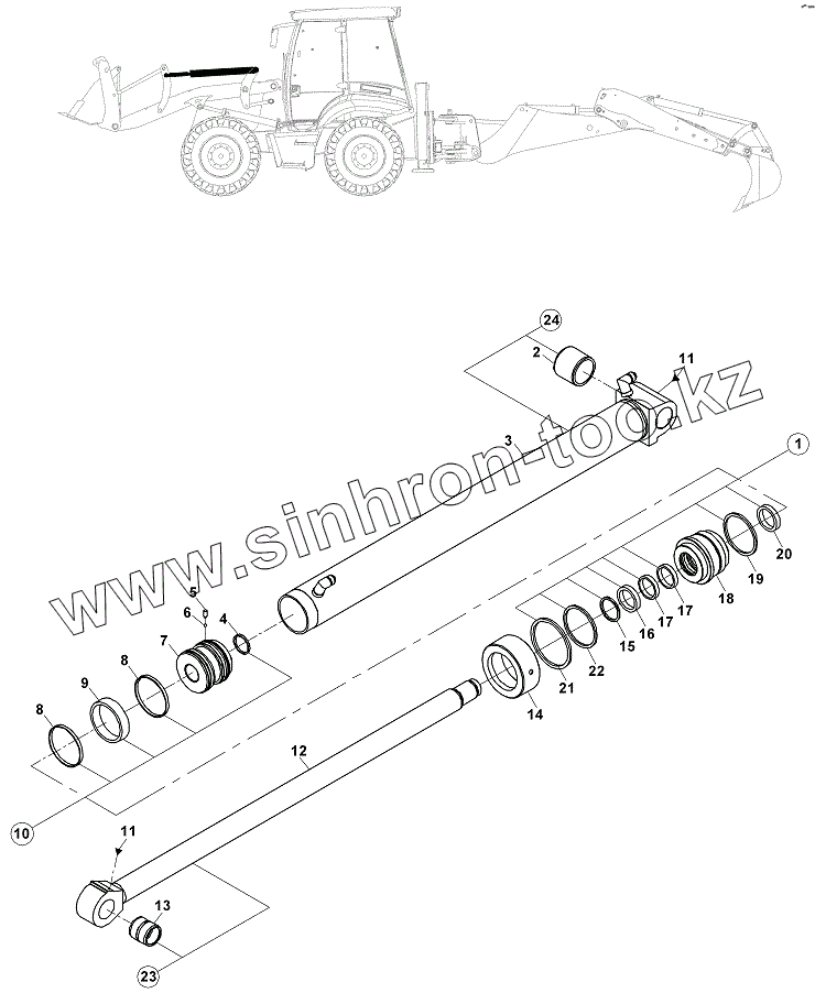 Каталог запасных частей к технике: Hidromek HMK 102S ALPHA. BUCKET CYLINDER, LOADER, LH