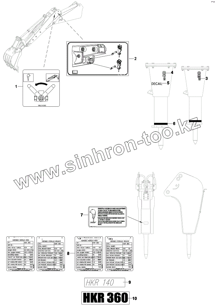 Каталог запасных частей к технике: Hidromek HMK 102S ALPHA. DECAL AND PLATES, BREAKER