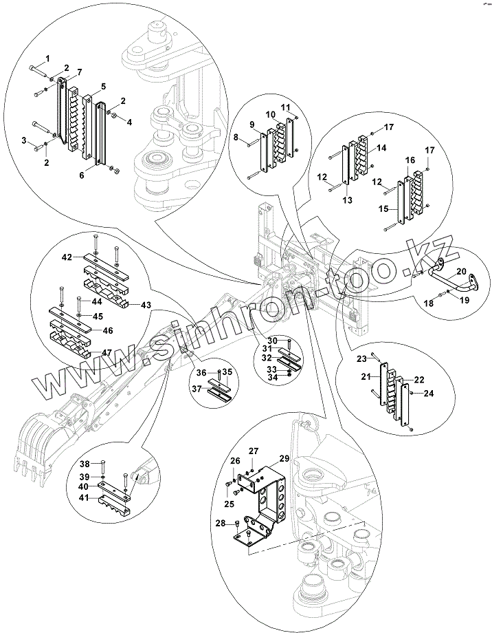 Каталог запасных частей к технике: Hidromek HMK 102S ALPHA. HOSE HOLDER SET (TELESCOPIC ARM)