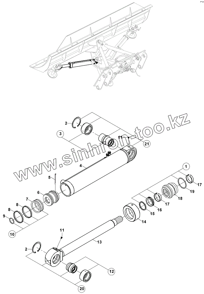 Каталог запасных частей к технике: Hidromek HMK 102S ALPHA. LEVELLING BLADE CYLINDER (DOUBLE AXIS) RH