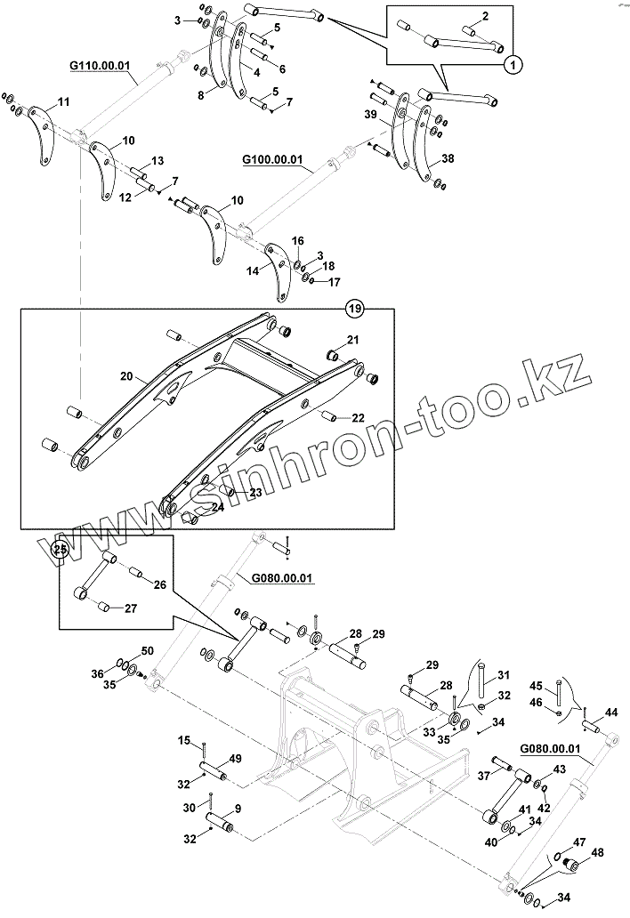 Каталог запасных частей к технике: Hidromek HMK 102S ALPHA. LOADER ARM MOUNTING (1)