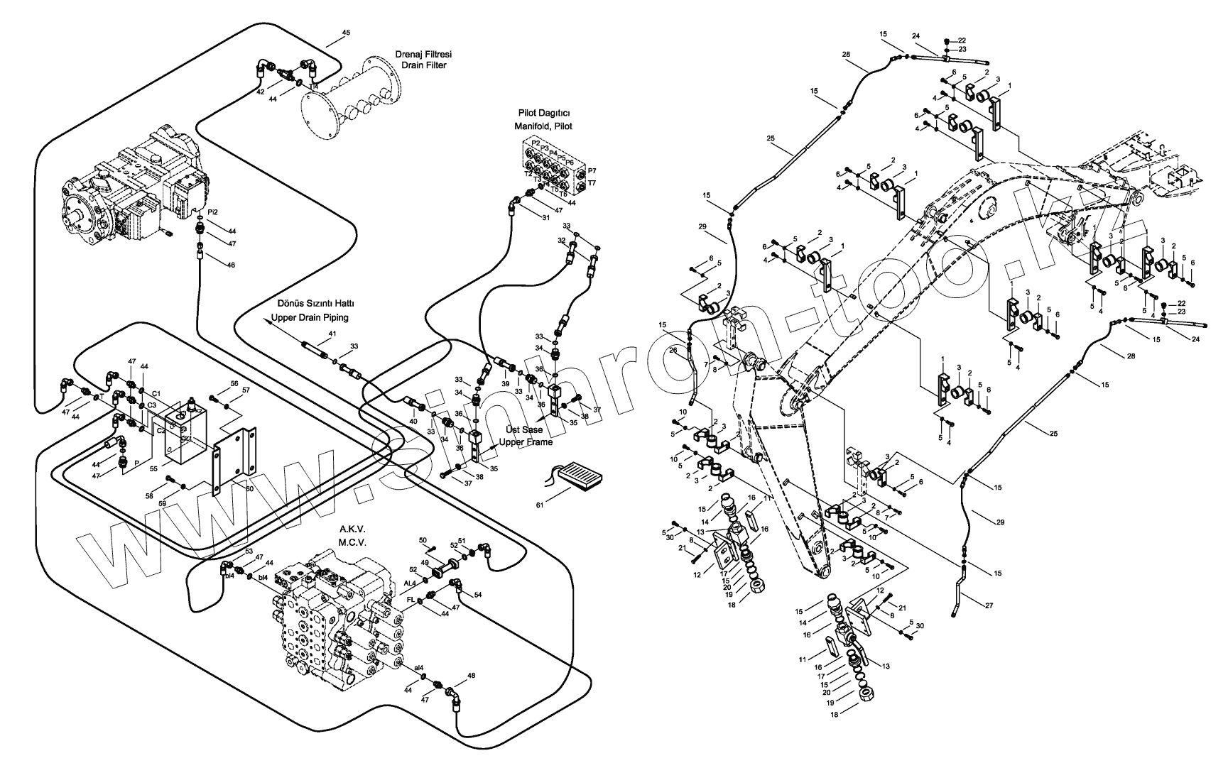 Каталог запасных частей к технике: Hidromek HMK 200W. BREAKER PIPING MOUNTING