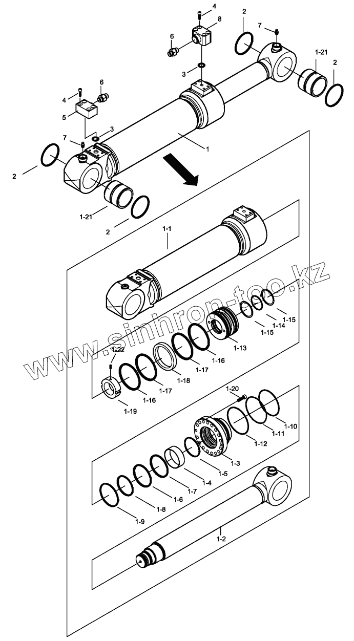 Каталог запасных частей к технике: Hidromek HMK 200W. DOZER BLADE CYLINDER