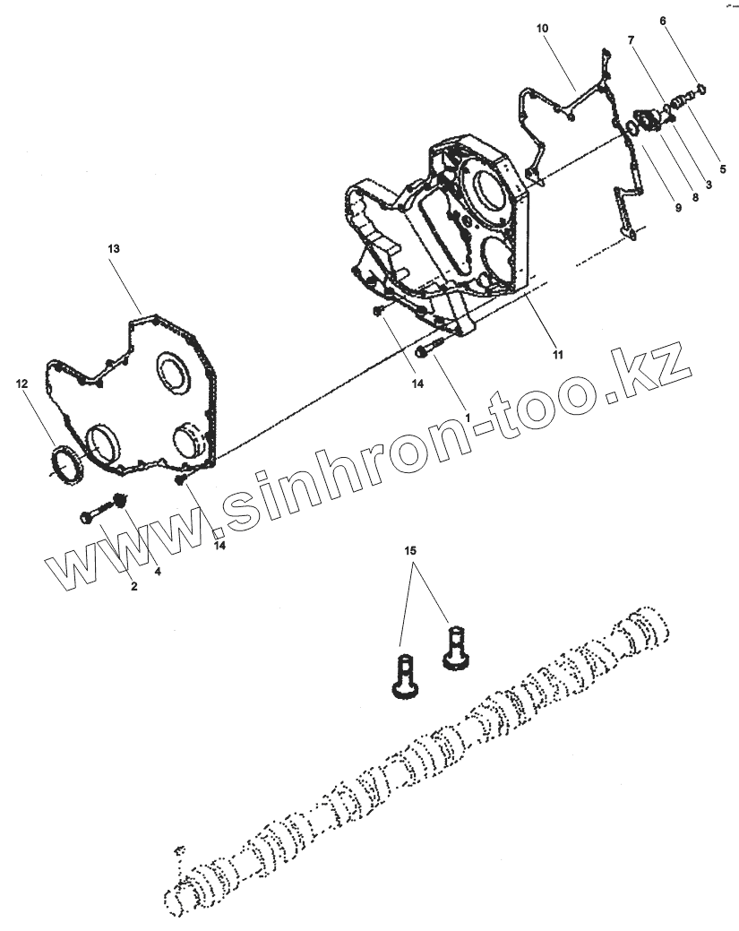 Каталог запасных частей к технике: Hidromek HMK 200W. FRONT GEAR COVER AND VALVE TAPPET
