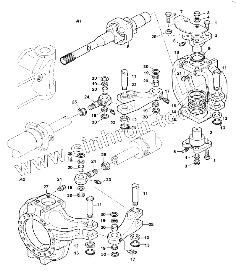 Каталог запасных частей к технике: Hidromek HMK 200W. KNUCKLE - FRONT AXLE