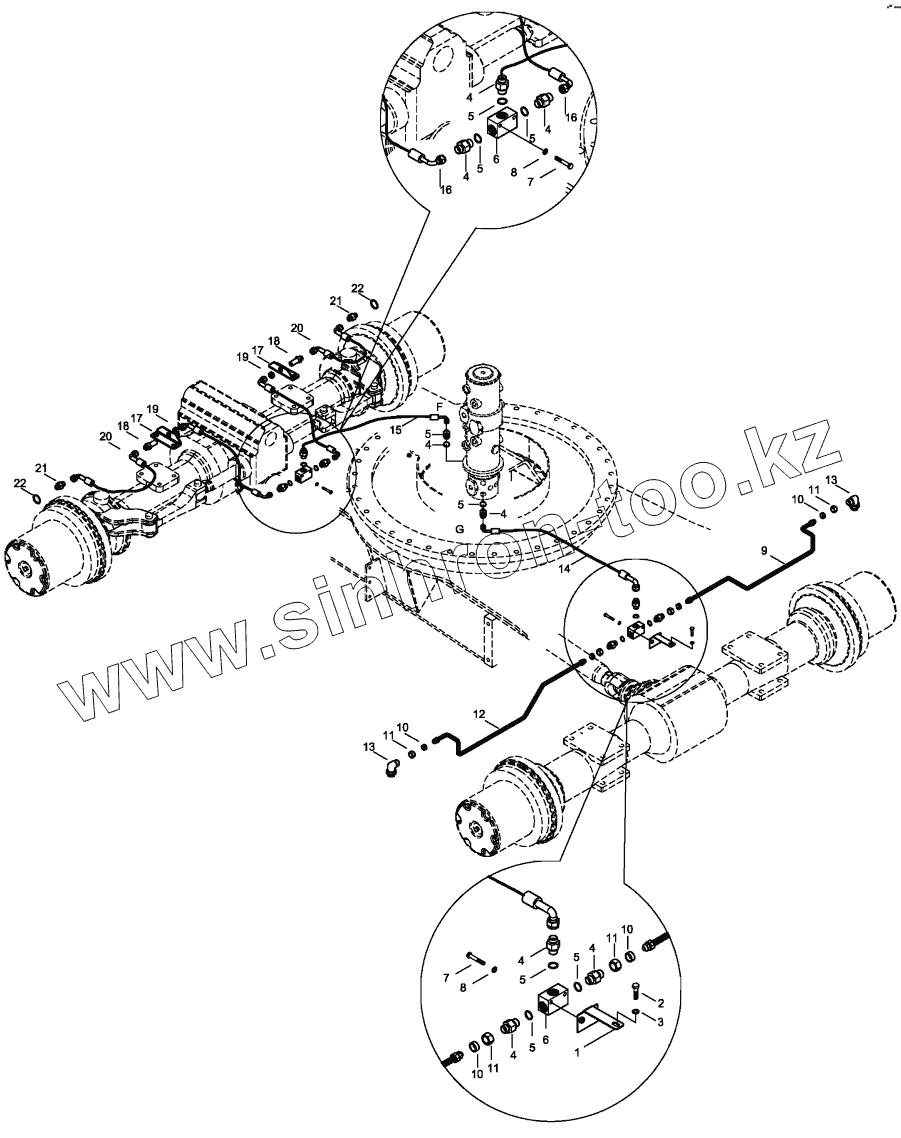 Каталог запасных частей к технике: Hidromek HMK 200W. LOWER FRAME HYDRAULIC MOUNTING