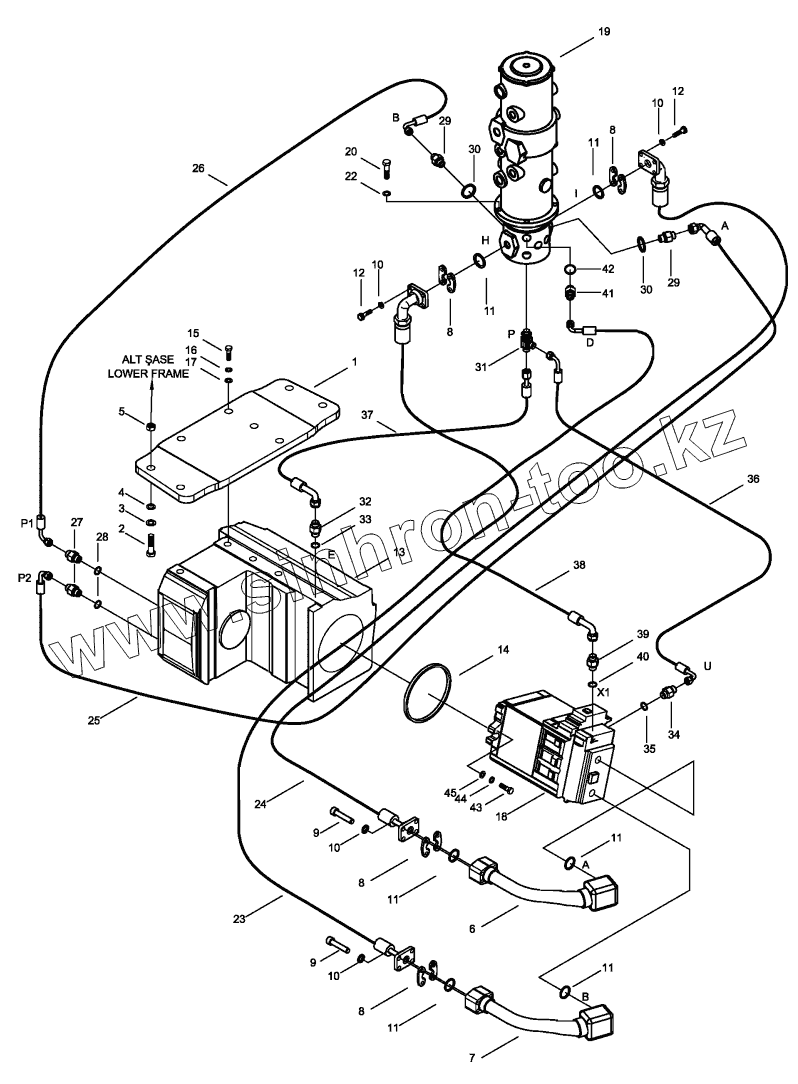 Каталог запасных частей к технике: Hidromek HMK 200W. LOWER FRAME HYDRAULIC MOUNTING