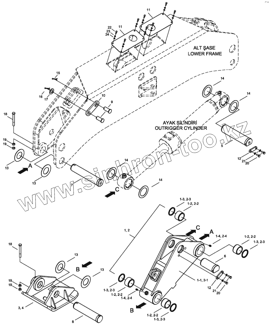 Каталог запасных частей к технике: Hidromek HMK 200W. OUTRIGGER MOUNTING