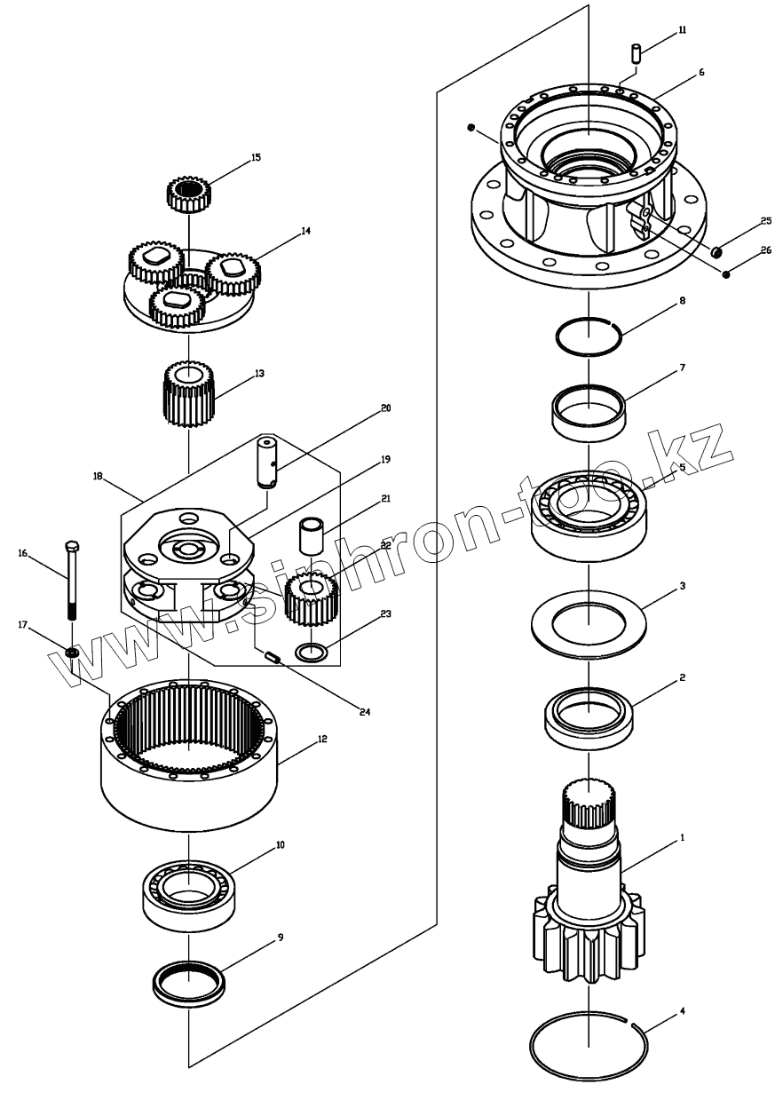 Каталог запасных частей к технике: Hidromek HMK 200W. REDUCTION GEAR-SWING UNIT