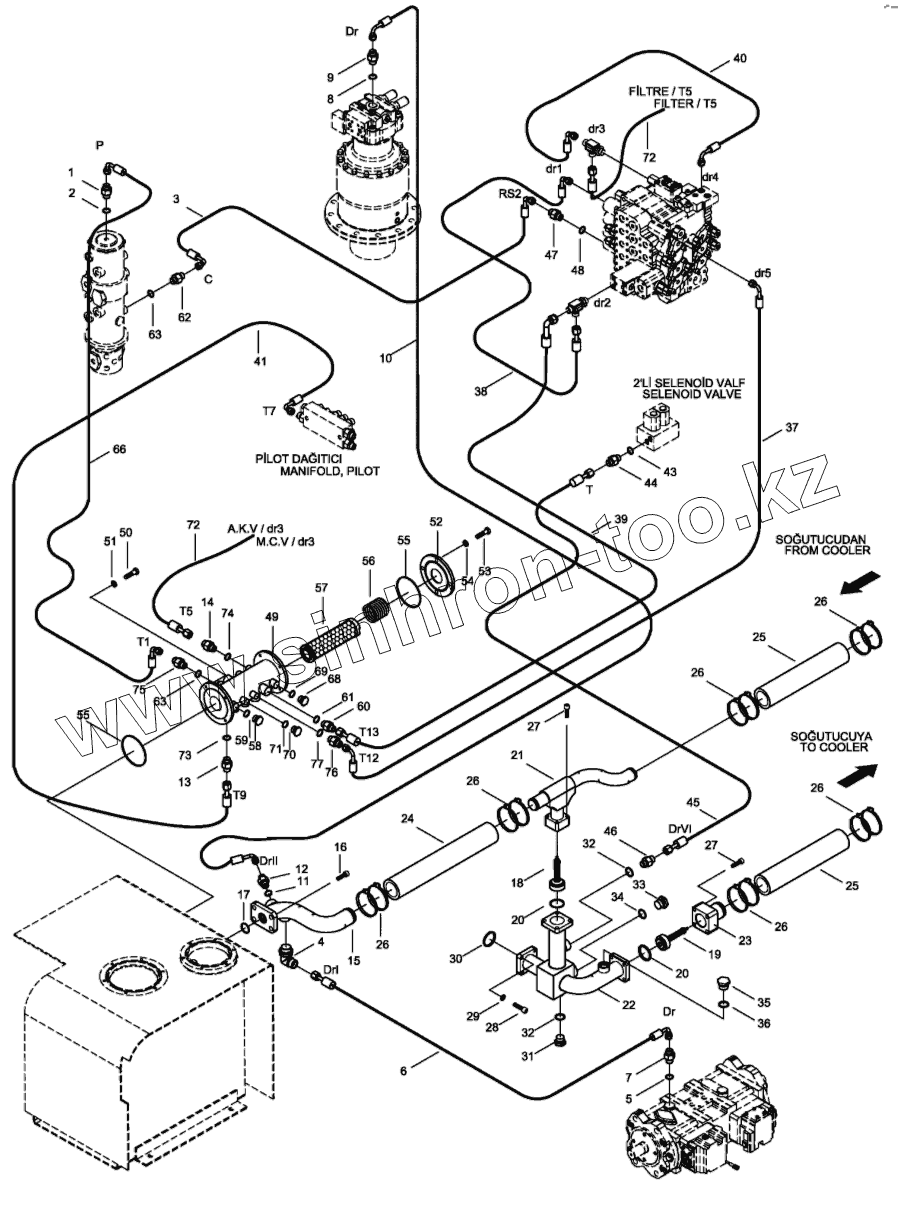 Каталог запасных частей к технике: Hidromek HMK 200W. UPPER DRAIN PIPING MOUNTING