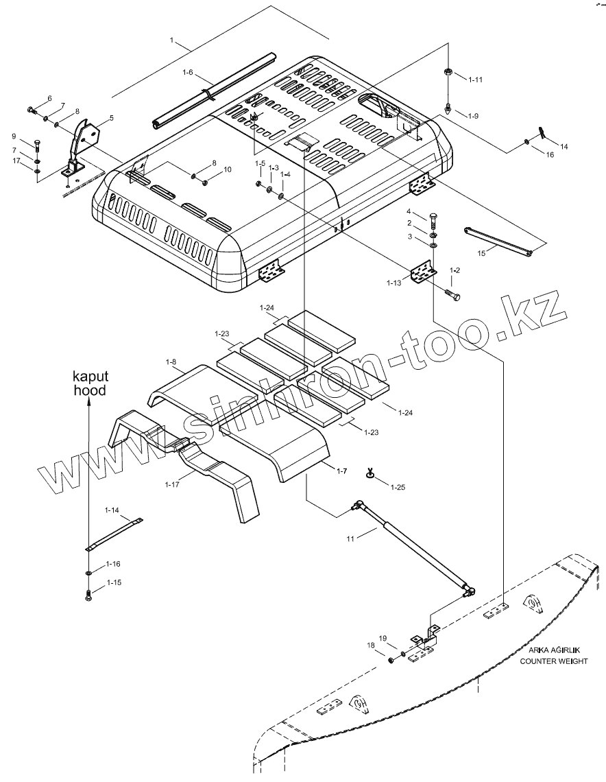 Каталог запасных частей к технике: Hidromek HMK 220LC-2. COWLING MOUNTING