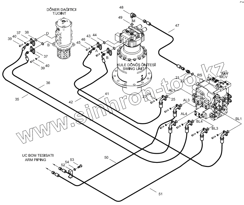 Каталог запасных частей к технике: Hidromek HMK 220LC-2. MAIN PIPING MOUNTING (L/H)