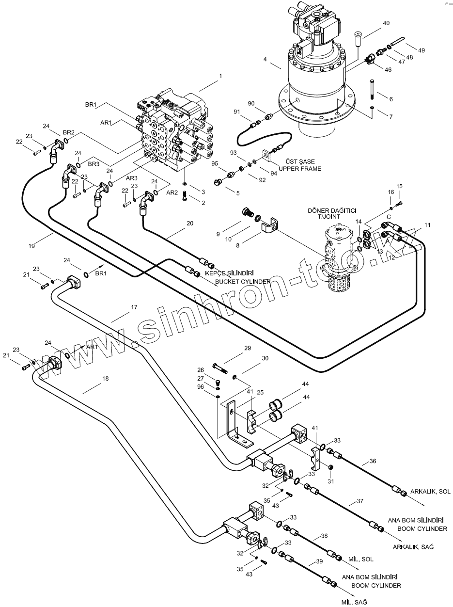 Каталог запасных частей к технике: Hidromek HMK 220LC-2. MAIN PIPING MOUNTING (R/H)
