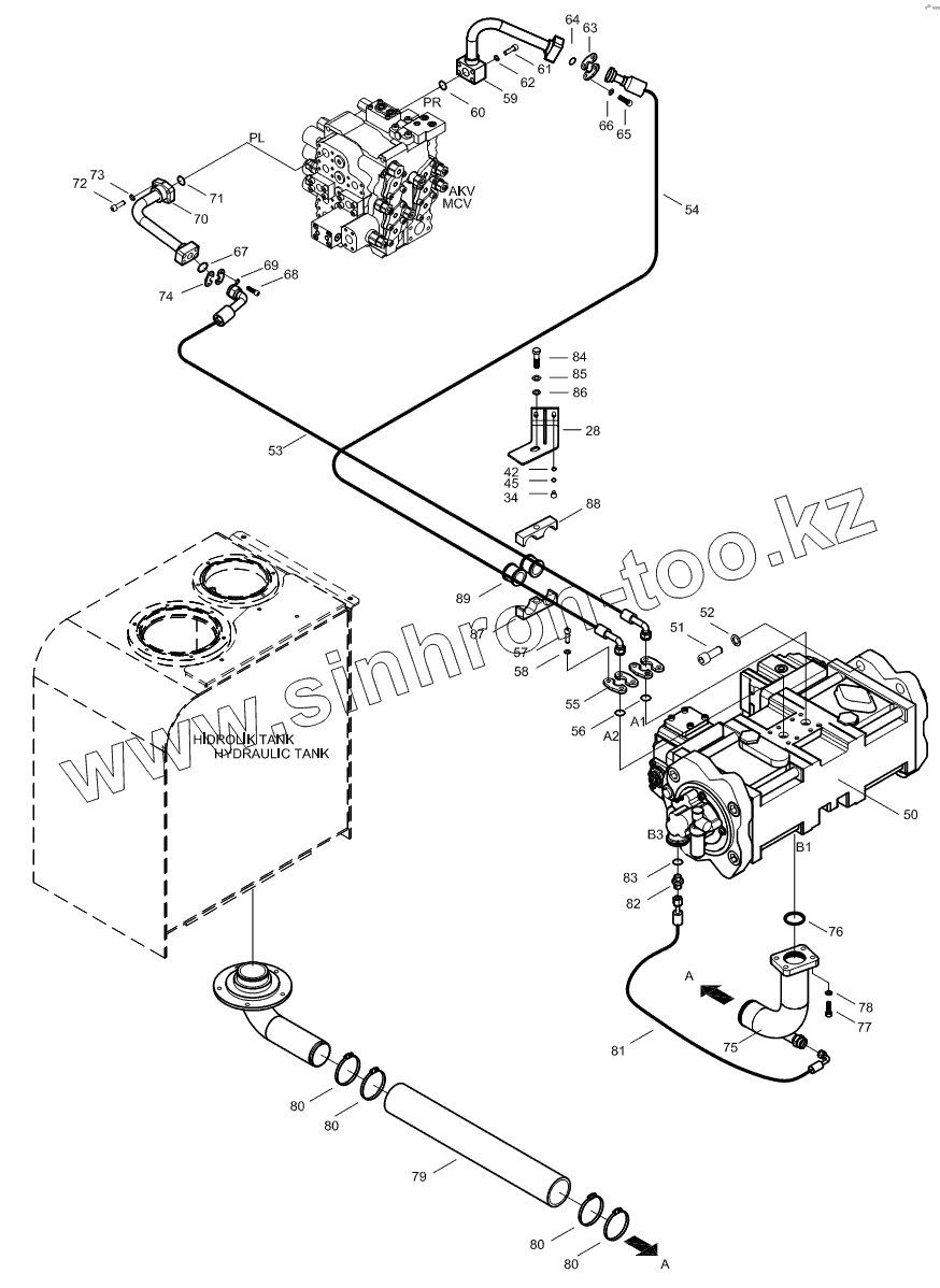 Каталог запасных частей к технике: Hidromek HMK 220LC-2. MAIN PIPING MOUNTING (R/H)