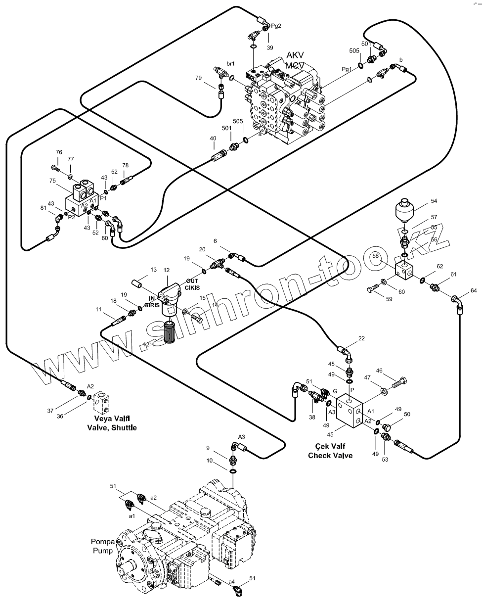 Каталог запасных частей к технике: Hidromek HMK 220LC-2. PILOT PIPING MOUNTING 2