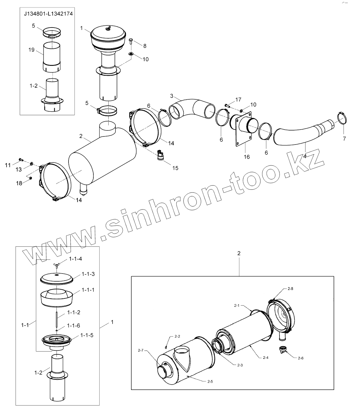 Каталог запасных частей к технике: Hidromek HMK 230LC3. AIR INTAKE SYSTEM