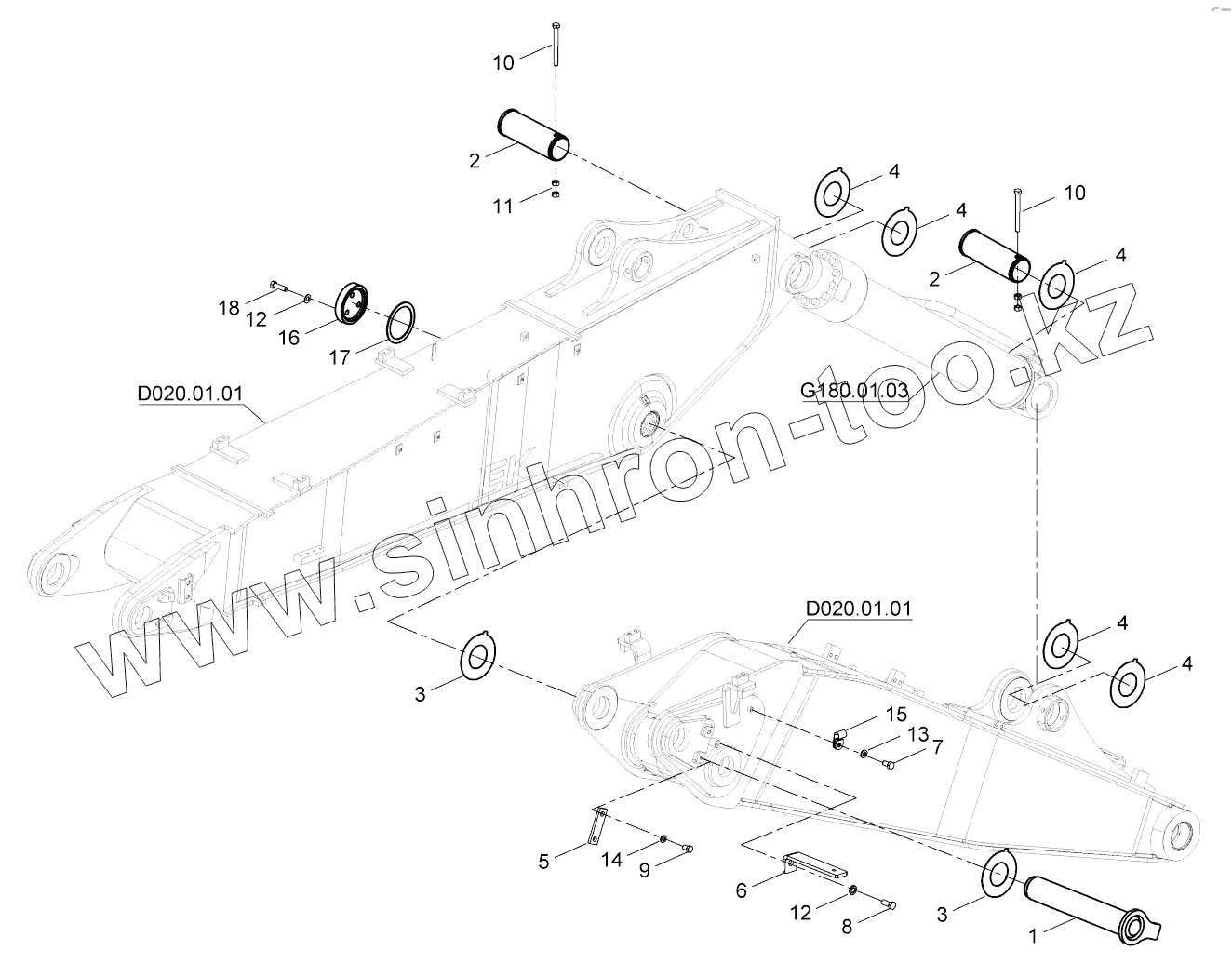 Каталог запасных частей к технике: Hidromek HMK 230LC3. BOOM MOUNTING, 2 PIECES (5.6m)