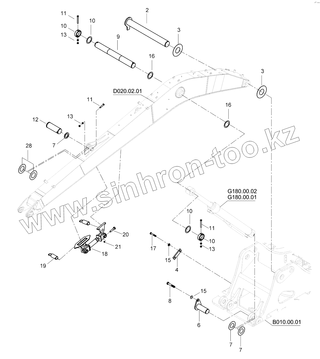 Каталог запасных частей к технике: Hidromek HMK 230LC3. BOOM MOUNTING (LR)