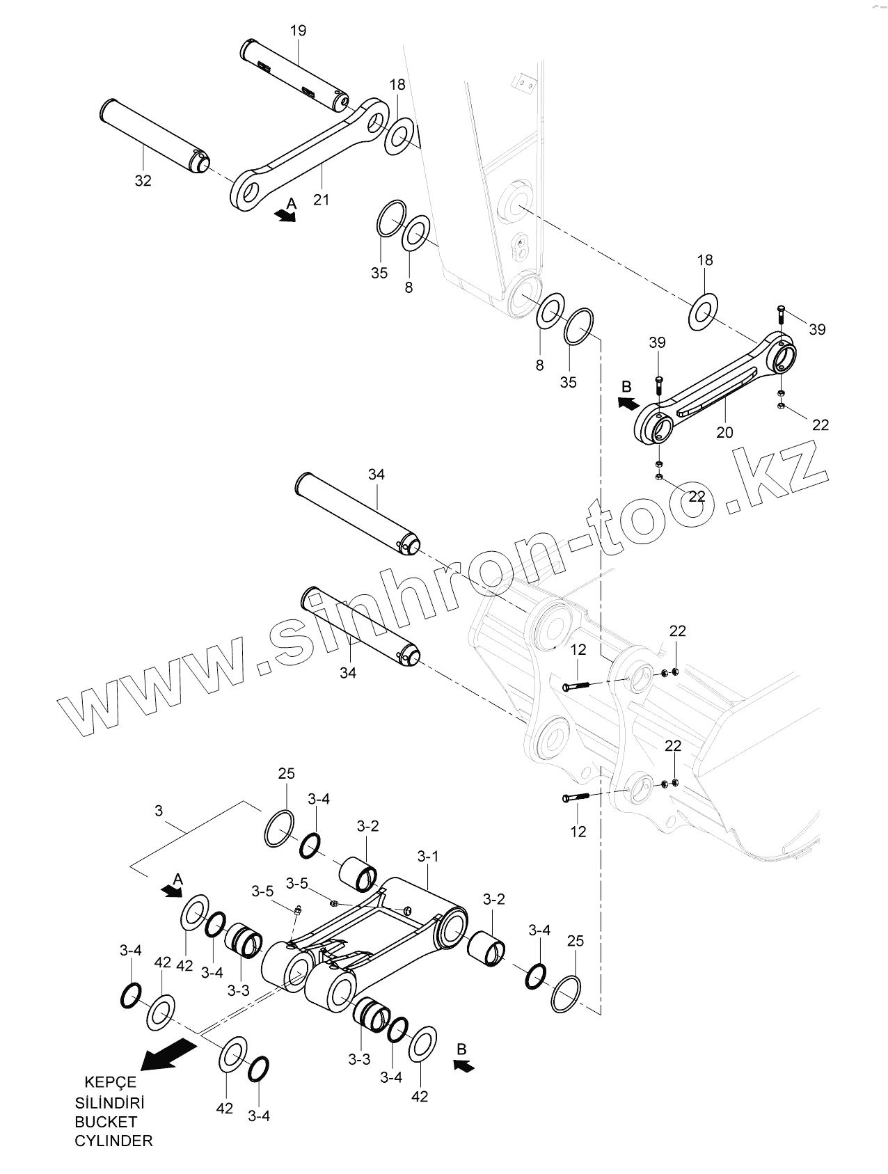 Каталог запасных частей к технике: Hidromek HMK 230LC3. BUCKET LINKAGE