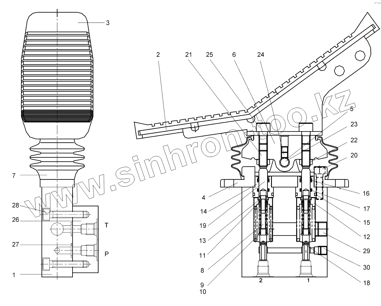 Каталог запасных частей к технике: Hidromek HMK 230LC3. DOUBLE ACTING PEDAL AND VALVE (OP)