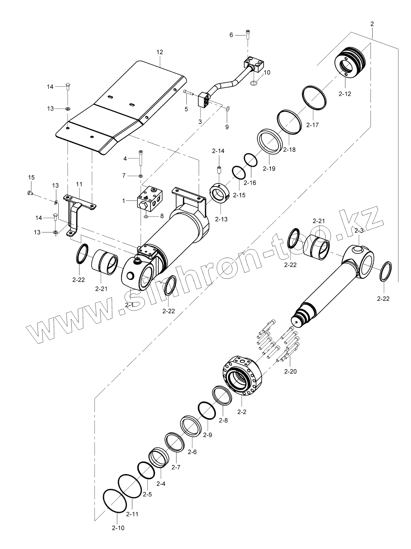 Каталог запасных частей к технике: Hidromek HMK 230LC3. DOZER CYLINDER, RH (OP)