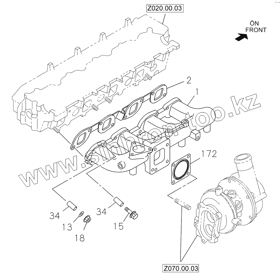 Каталог запасных частей к технике: Hidromek HMK 230LC3. EXHAUST MANIFOLD