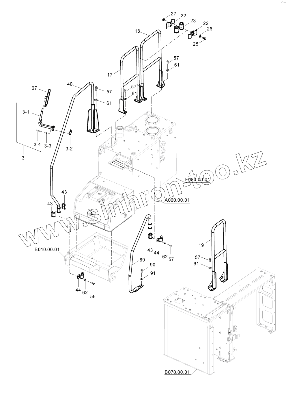 Каталог запасных частей к технике: Hidromek HMK 230LC3. GUARD RAIL MOUNTING