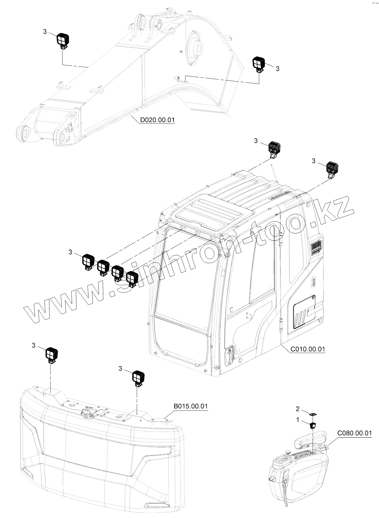 Каталог запасных частей к технике: Hidromek HMK 230LC3. LIGHTING GROUP, WITH LED