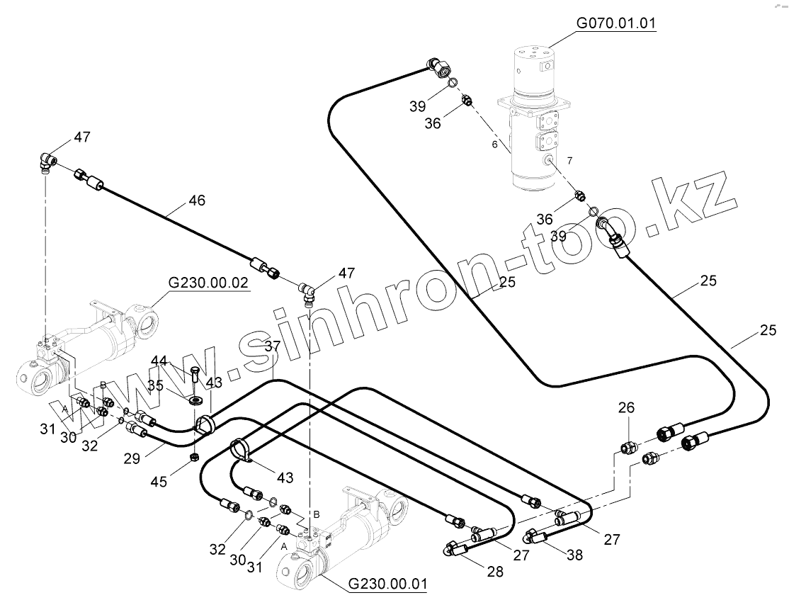 Каталог запасных частей к технике: Hidromek HMK 230LC3. LOWER FRAME HYDRAULIC PIPING, DOZER