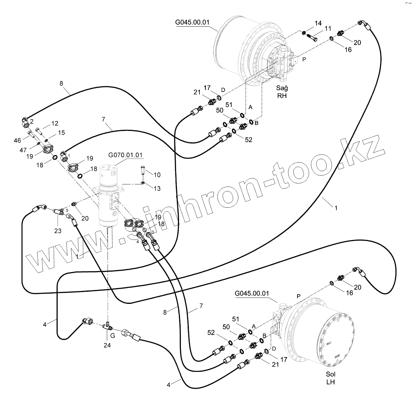 Каталог запасных частей к технике: Hidromek HMK 230LC3. LOWER FRAME HYDRAULIC PIPING, TRAVEL