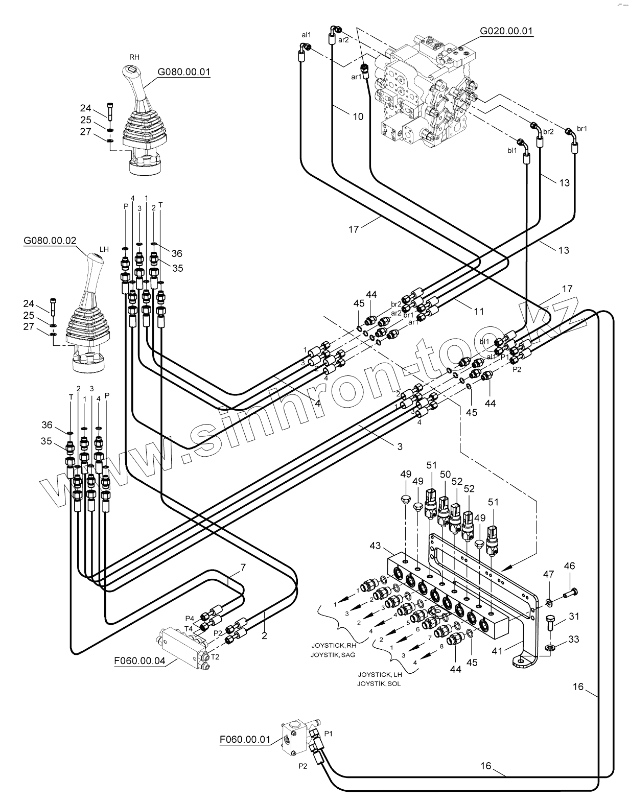 Каталог запасных частей к технике: Hidromek HMK 230LC3. PILOT HYD. PIPING, ATTACHMENT (1)