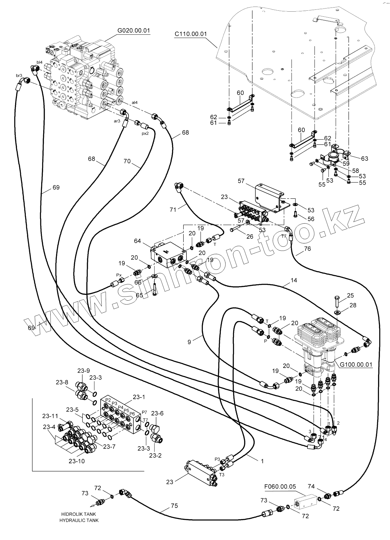 Каталог запасных частей к технике: Hidromek HMK 230LC3. PILOT HYD. PIPING, ATTACHMENT (2)