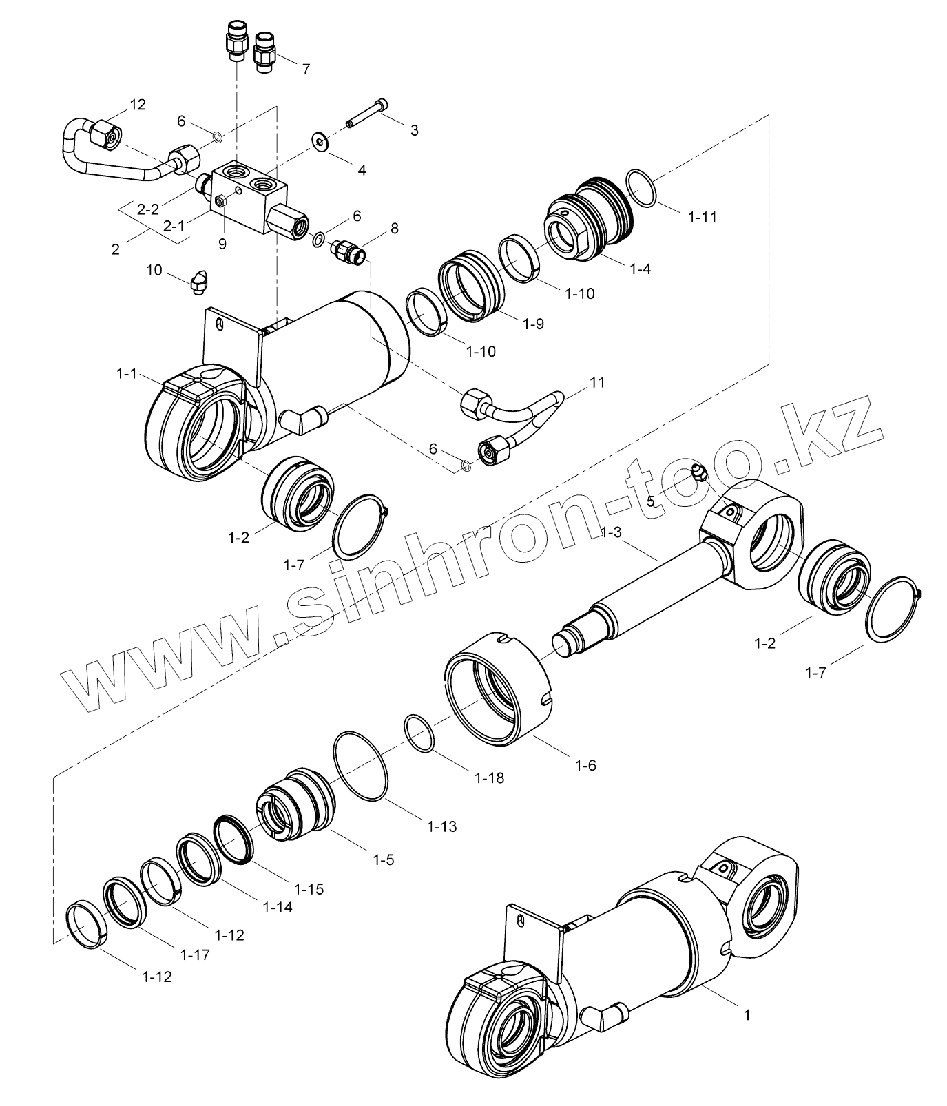 Каталог запасных частей к технике: Hidromek HMK 230LC3. QUICK COUPLER CYLINDER (OP)
