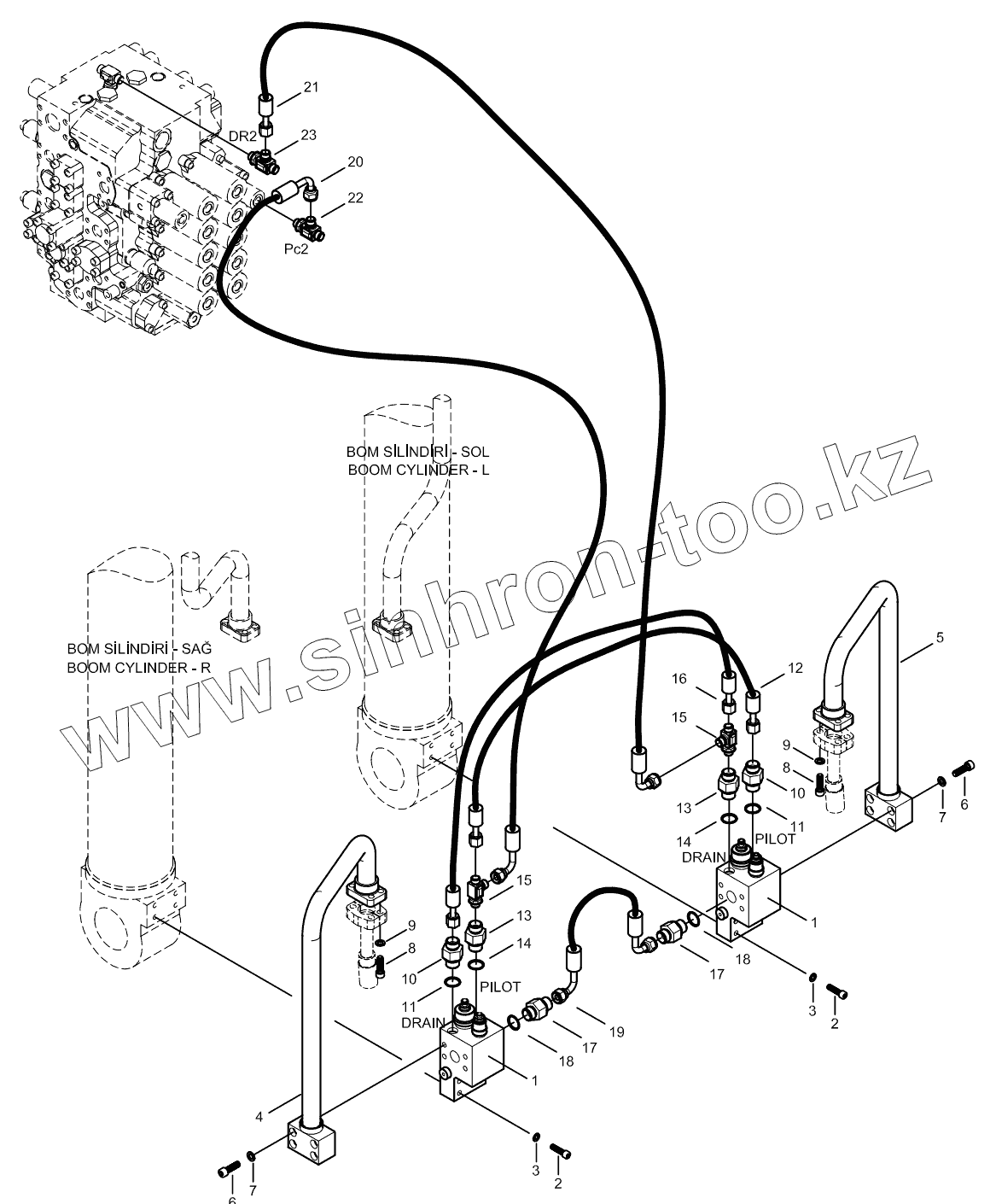 Каталог запасных частей к технике: Hidromek HMK 300LC. BOOM SAFETY LOCK SYSTEM (OP)