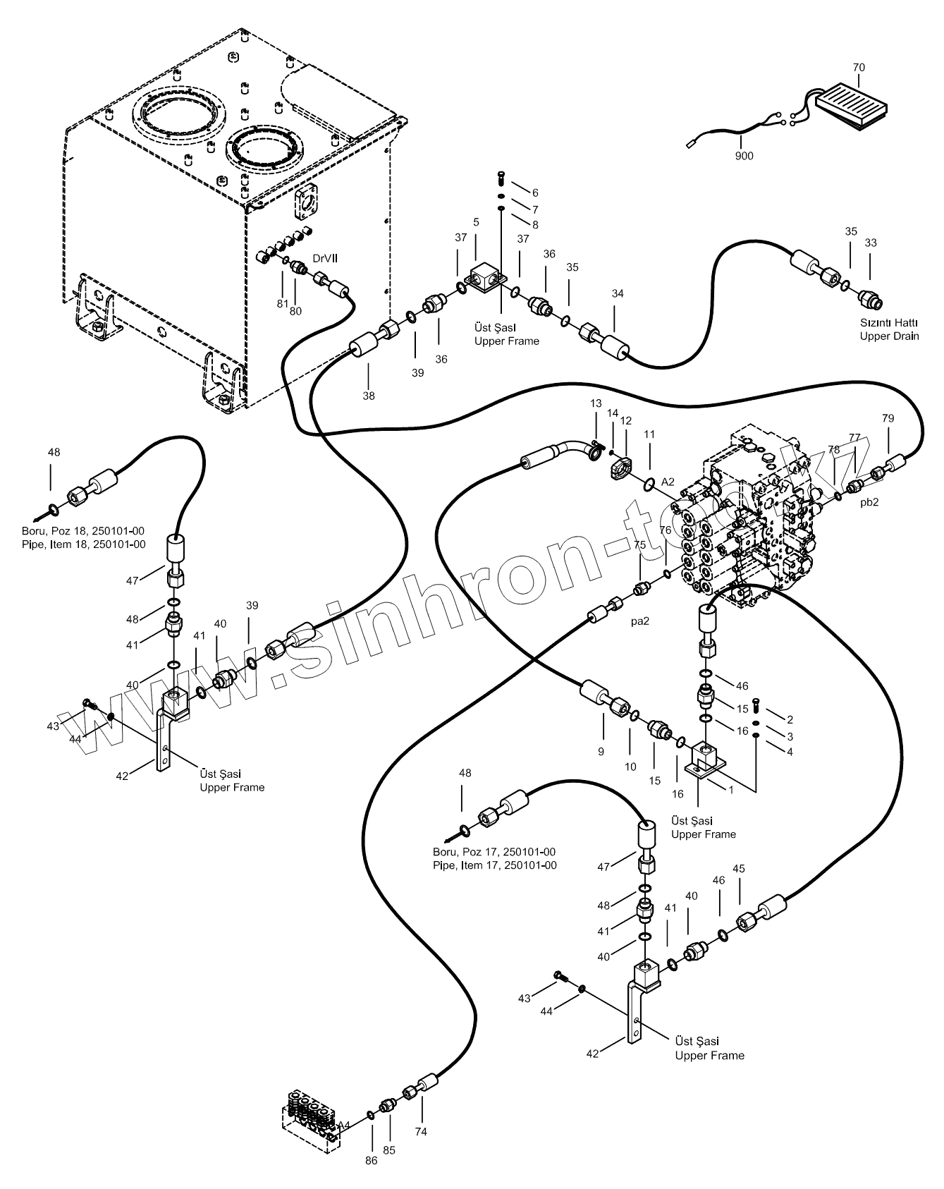 Каталог запасных частей к технике: Hidromek HMK 300LC. BREAKER PIPING MOUNTING (2) (OP)