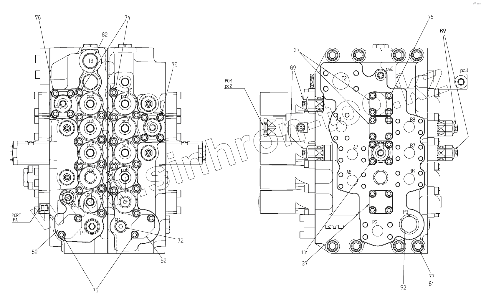 Каталог запасных частей к технике: Hidromek HMK 300LC. MAIN CONTROL VALVE (2)