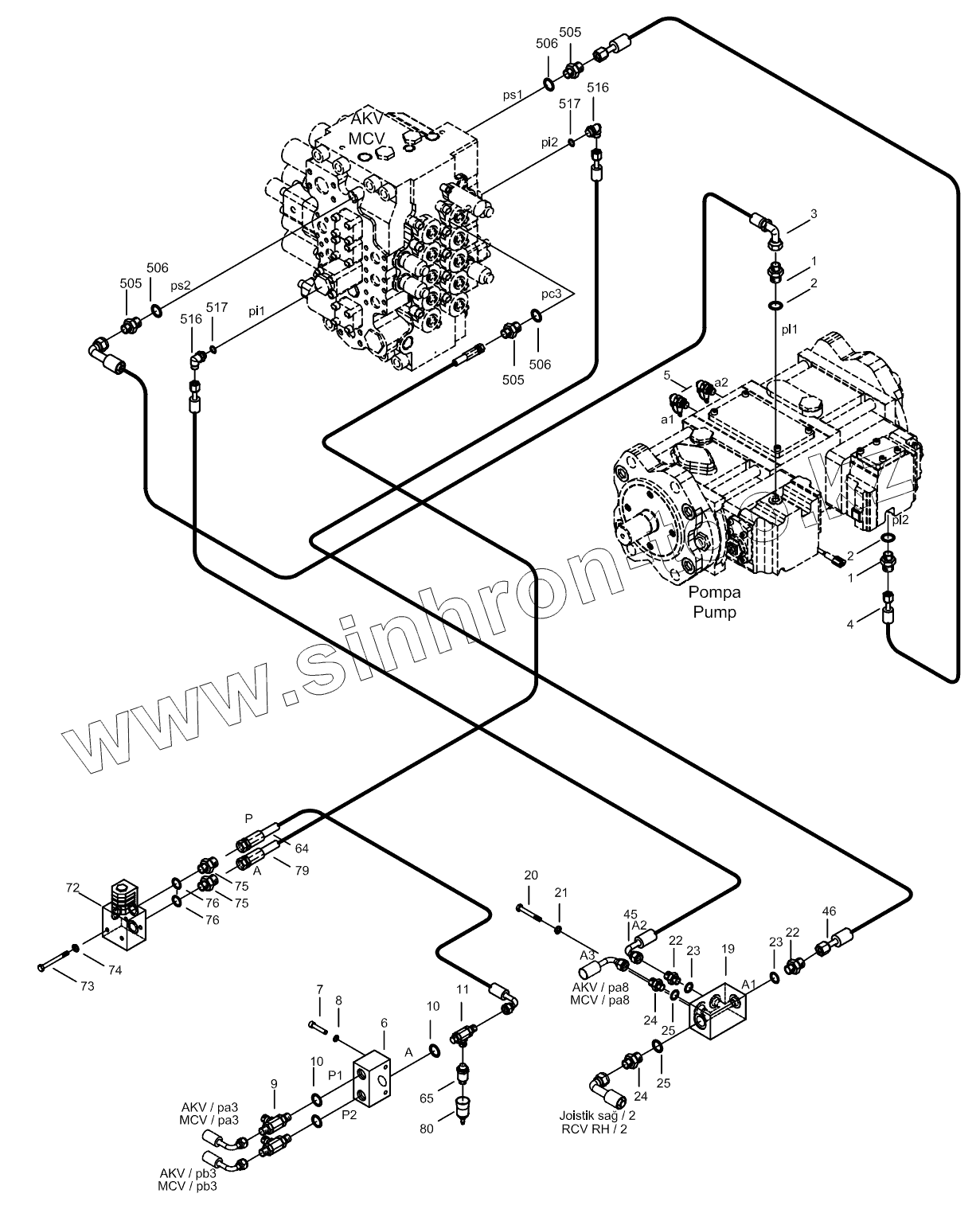 Каталог запасных частей к технике: Hidromek HMK 300LC. PILOT PIPING MOUNTING 2 (1/2)
