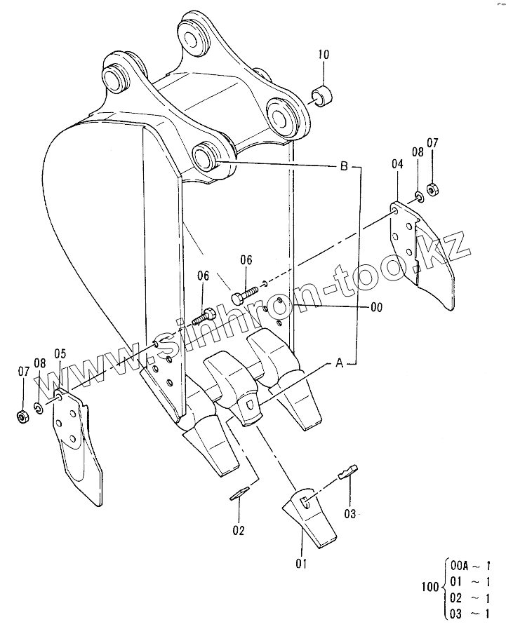 Каталог запасных частей к технике: Hitachi EX-100-2. BUCKET 0.17,