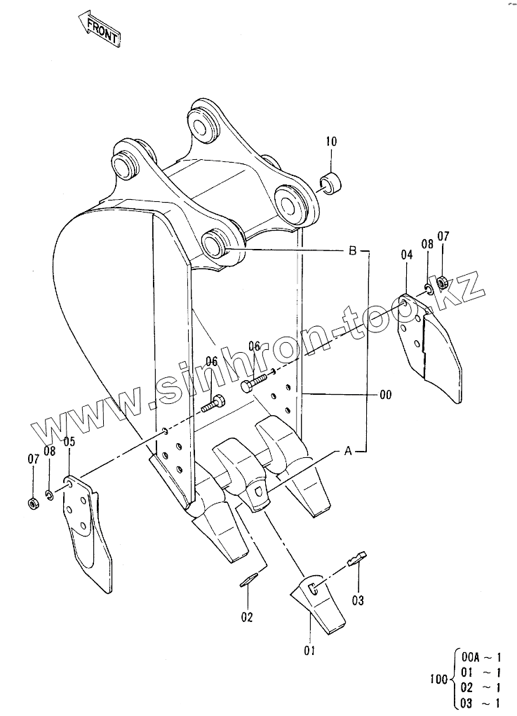 Каталог запасных частей к технике: Hitachi EX-100-2. BUCKET 0.25,